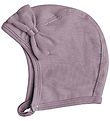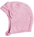 Cute Racing Kids baby hat in plain dusty pink, and on the left side of the helmet is a nice bow.