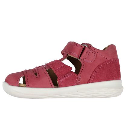 The Superfit sandals have an adjustable Velcro strap in front of the ankle and an elastic strap across the foot, making it easy to put on and adjust. They have a good heel and a closed toe, so they provide good protection. They are lined with leather on the inside and have a soft leather insole.