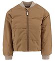 The Wheat quilted jacket has a removable hood that fastens with push buttons around the ribbed collar. The sleeves have practical elastic edges in the openings, where it is possible to attach mittens on the inside (sold separately).