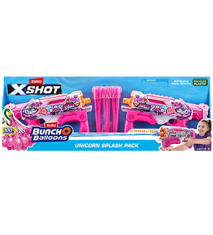 The Bunch O Balloon water guns are in the Hyperload model, and they can be filled and fired with water using a pump mechanism. Each water gun has a capacity of 500 mL and a range of up to 10 meters.