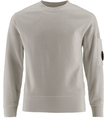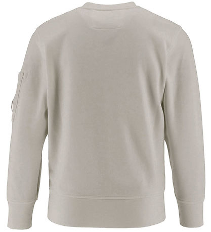 The CP Company sweatshirt has long sleeves and soft ribbed edges. At the top of the left sleeve there is a pocket that closes with a black push-botton.