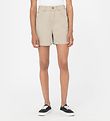 The Dickies shorts have a wide elastic edge at the waist, which can be adjusted with drawstring. The Shorts have two distinctive front pockets and an open back pocket. In the leg openings there is a narrow edge with a little slit on the outside.