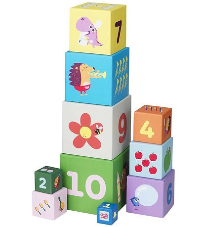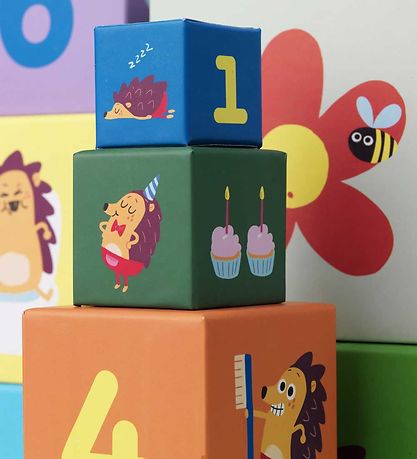 Funny DR stacking boxes consisting of a total of 10 parts with different print of Børste the hedgehog and friends.