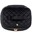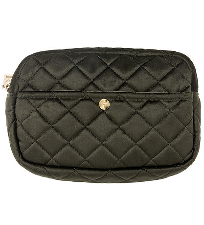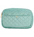 Beautiful Fan Palm toiletry bag in dark green velvet with a nice quilted pattern.