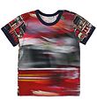 The T-shirt is short-sleeved, has turquoise edges and can be buttoned on the left shoulder.