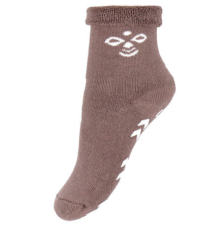 Fine Hummel socks in a dusty purple shade with a white Hummel bee on each side of the shaft.
