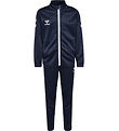 Practical Hummel tracksuit in a dark blue shade. The Set includes a zipper track jacket and matching trousers, both with logo on. An ideal choice for active play and movement from Hummel.