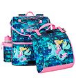The School backpack has a 4-point supported, ergonomic back and padded shoulder straps that have Jeva's "Easy Adjust" top, giving 7 extra cm for adjustment. The shoulder straps also have a practical chest strap with a click buckle. There is a handle at the top, so the bag can also be carried by hand. The Bag has several reflective details and has a reinforced bottom, so the contents are protected and the bag can stand on its own.