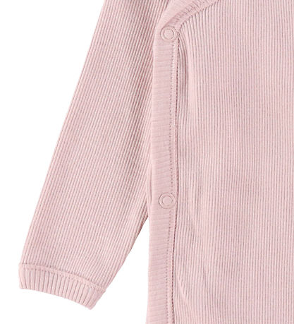The Bodysuit has long sleeves and has a turn-around function so that it can be buttoned all the way up with push buttons. This function makes it super easy to get the bodysuit on and off the kid without having to pull it over the head. Between the legs, the bodysuit can also be opens using push buttons, which makes it easy to get to the nappy. The Bodysuit is edged with rib all around for increased comfort.