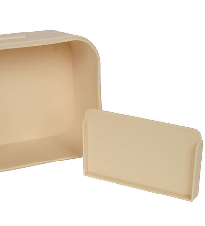 The Konges Sløjd lunchbox has a lid with clamps on the sides so that it closes tightly. Inside there is one large compartment, an optional partition and a little extra container with a silicone lid.
