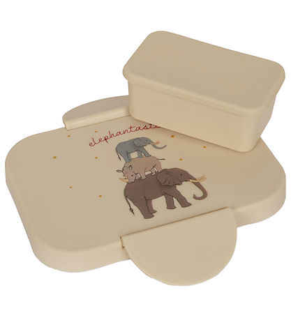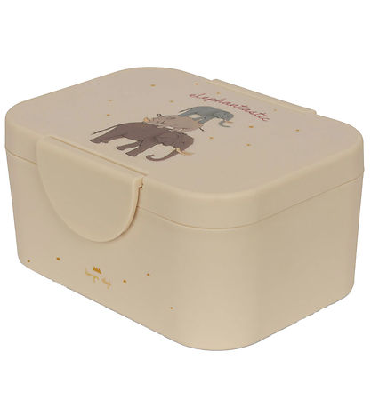 Beautiful Konges Sløjd lunch box in beige with a print of a safari animal.