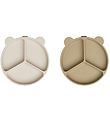 The Liewood bowls are equipped with a smart suction cup at the bottom, which Fast to the table when the kid is practicing eating by himself. With the little cut on one side, it is easy to get the suction cup to release again. The Bowl is made of flexible silicone, and is ideal as the kid's first bowl, as the material does not break.