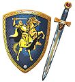 The Liontouch shield comes in a triangular shape, and on the back there are two adjustable velcro straps that a kid's arm can fit in. The shield is perfect for dress up and playing, and is made of foam.