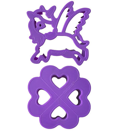 Fun Lunch Punch cutters in dark purple and sold as a 2-Pack with the shape of a unicorn and hearts.