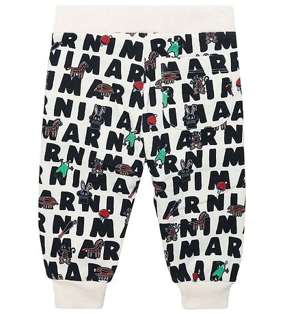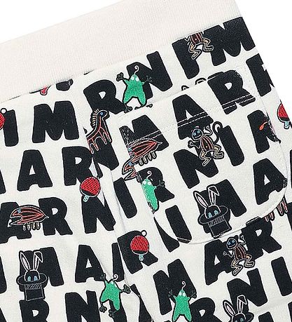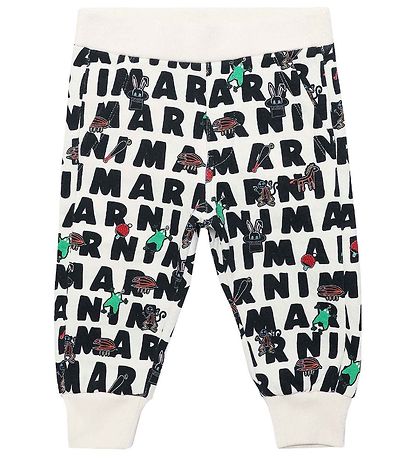 Beautiful Marni sweatpants in creamy white with all-over-print of the brand name and various toy figurine.
