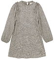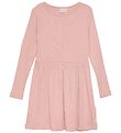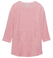 The Minymo dress has long sleeves and a round neckline with a narrow ribbed hem. The Dress has an open kangaroo pocket at the front, and at the bottom it has a rounded shape. The Dress is in a delicious cotton quality with a terrycloth texture.