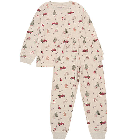 Lovely 2 Parts pyjama set from Minymo will bring coziness into the bedroom. The Set consists of a long-sleeved blouse and trousers, both decorated with a cute print of cars, Christmas trees and gingerbread. Minymo is known for its playful design, and this pyjama set is no exception with its charm and comfort. The soft fabric and the elastic ribbing ensure a good fit and a comfortable night's sleep.