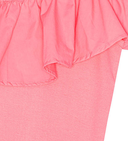 The Molo top has a ribbed structure and is made in a comfortable and stretchable quality. At the top, there is a narrow elastic edge with a wide frill that goes over the left shoulder.
