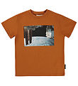 Smart Molo t-shirt with flame print in blue, black and white. The T-shirt has a round neckline with a narrow ribbed edge and short sleeves.