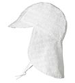 The MP legionnaire hat has a round head shape with a Fast brim at the front and a long brim at the back with an elastic band at the neck. The Sun hat is tied with a drawstring under the chin and is made of a comfortable cotton quality.