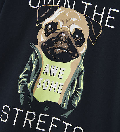 Excellent Name It long sleeve blouse in a dark blue shade, adorned with a colorful print of a dog with the text "OWN THE STREETS" on the front. This design is sure to attract attention.