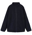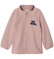 The Name It fleece jacket has a high throat and long sleeves. There are narrow, elastic edges in both the arm and waist openings. The Fleece jacket opens at the front using a zipper with chin guard and inner placket. On the left chest there is a vertical zipper pocket in a smooth-woven material, and on the front there are two open pockets on the sides.
