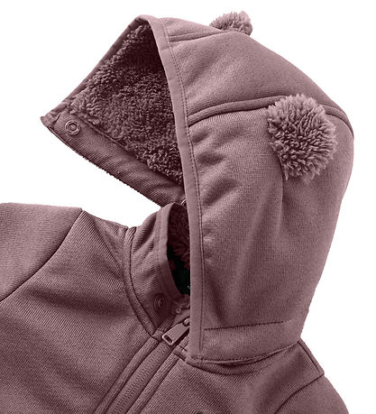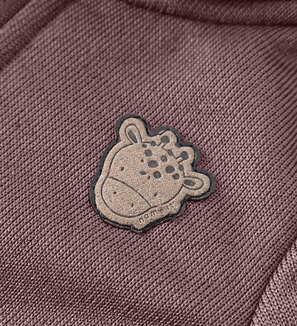 Fine Name It softshell jacket in dusty purple with a decorative giraffe appliqué on the left chest and cute ears on the top. The Jacket is lined with lovely soft teddy fleece all over.