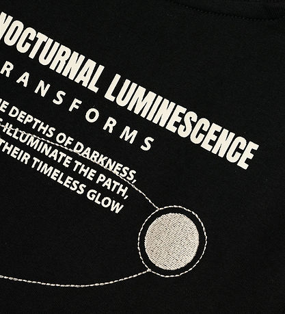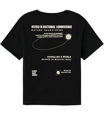 Cool Name It t-shirt in black with beige prints, in the form of a smaller print on the left chest and a large one on the back. The print consists of text and embroidered moon illustrations.