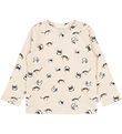 Beautiful Petit Piao blouse with long sleeves. The Blouse has a simple striped pattern in dark green and cream white, which creates a classic look. The Blouse has a round neckline and practical push buttons on the shoulder, which makes it easy to put on.