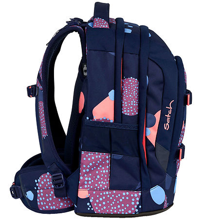 The Satch school backpack has a completely firm bottom and back, which provides ergonomic support. The back can also be adjusted according to the kid's height, so that the bag fits perfectly, while the school backpack grows with the kid and can be used for many years. There are padded shoulder straps which can be adjusted in length, and they can also be adjusted in relation to how high up on the back of the bag they should sit. In addition, there is an adjustable chest strap and a hip belt, which can be removed if desired.