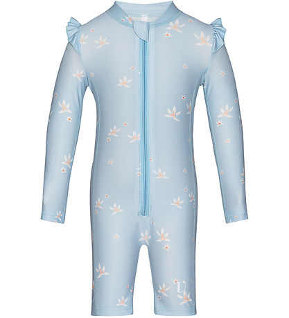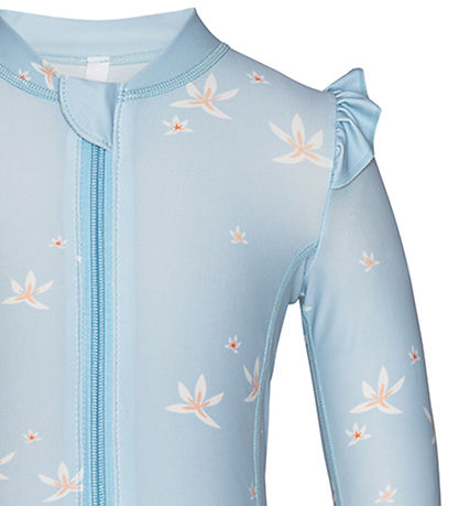 Smart Vanilla Copenhagen coverall swimsuit in light blue with an all-over-print of flowers in white and yellow.