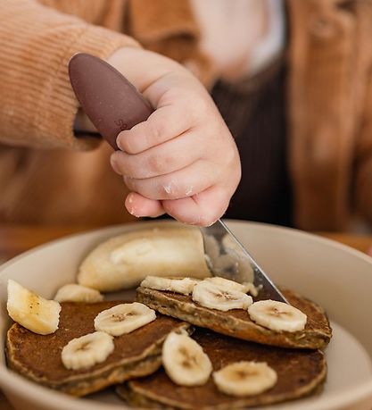Cute BIBS cutlery in a set with a knife, a fork and a spoon in metal with a shaft in dusty chestnut.