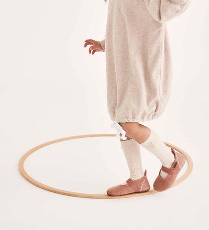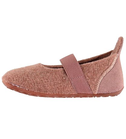 Beautiful Bisgaard ballerina slippers in a dusty pink, felted wool with heel counters made of dusty rose suede.