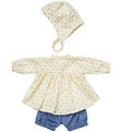The Cam Cam Copenhagen doll clothes fit most dolls. The Dress has long sleeves with narrow elastic edges, and there is a seam at the chest which gives the skirt a good width. It opens at the neck with a push-botton. The bloomers have a narrow elastic edge at the waist and in the leg openings, while the bodice is opens with practical drawstring.