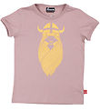 Delicious Danefæ T-shirts with short sleeves in a pink beige shade, adorned with a festive glittering print of a Viking girl on the front. Ideal for play and everyday fairy tale. Danefæ ensures quality and style.