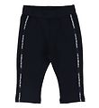 Beautiful Emporio Armani trousers in navy in a firmly woven quality with a glossy weave. Down the legs of the trousers is a narrow stripe with the name "Emporio Armani" together with a logo in white.