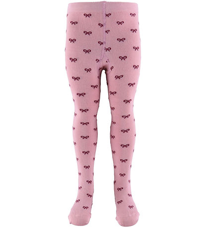 Cute Fuzzies tights in pink with a print of small burgundy bows.