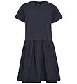 The Hummel dress has long sleeves with wide ribbed edges in the sleeve openings. There are fine folds at the shoulders and sleeve openings. It has a round neckline with a narrow ribbed hem. At the bottom, there are discreet stitching which gives a wide edge. The Dress is made in a delicious sweat quality with soft, brushed cotton on the inside.