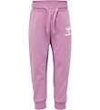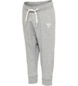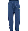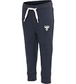 The Hummel sweatpants have a wide elastic edge at the waist with white, adjustable drawstring on the outside. Between the legs and at the ankles there are elastic ribbed edges, and the sweatpants are made in a comfortable cotton quality.