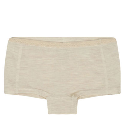 Sweet Hust and Claire hipsters in melange beige, with a lace trim at the waist.