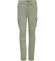 The Kids Only trousers have a wide elastic edge at the waist with internal, adjustable buttons. In front, there is an open pocket on each side, and on both trouser legs there is a flap pocket. In the leg openings, there are narrow elastic edges, which give the trousers a nice look. They are made in a light and tightly woven quality.