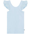 Inviting Konges Sløjd tanktop with a beautiful floral print, characterized by yellow and red tones. The top has thin straps and a edge with an elegant wavy structure.