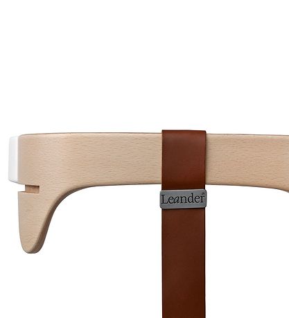 Practical Leander leather strap in brown for the safety bars on the Leander highchair.