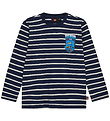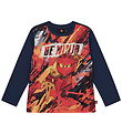 Beautiful LEGO® Wear blouse with long sleeves in a dark blue colour. The front is decorated with a colorful "Stronger Together" print with toy figurine that catch the eye.