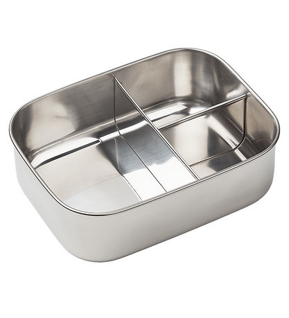 The Liewood lunchbox is made of stainless steel, which makes it hard so that it does not bend but retains its shape. The Lunchbox has a lid made of silicone, so it is easy to get on and off. Inside, the lunchbox is divided into two equal large compartments.