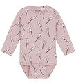 The Minymo bodysuit has long sleeves and opens with hidden push buttons over both shoulders and with regular push buttons between the legs. At all openings there are narrow ribbed edges and the bodysuit is made of a soft and delicious quality.