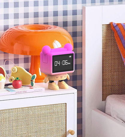Smart Mobility on Board alarm clock and speaker in one. It is designed as a figure in pink and orange with interchangeable ears. Rabbit and panda ears are included, which you can replace as often as you like. The alarm clock is made with ABS and silicone.