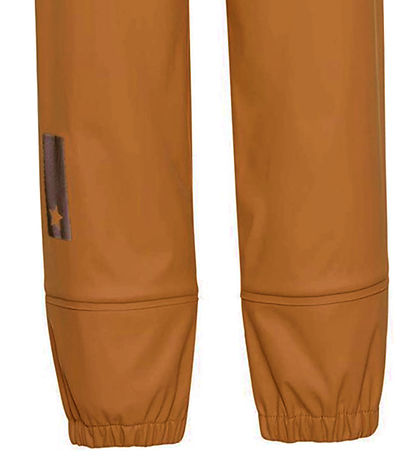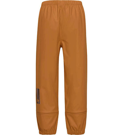 Stylish Molo rain pants made of PE in a plain almond brown. The Rain pants also have a practical logo reflector on the back of the right leg.