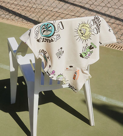Cool Molo t-shirt in light beige with allover print of various doodles and text.