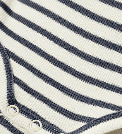 Cute Name It bodysuit in white with horizontal stripes in navy, and with a beautiful ribbed structure.